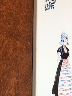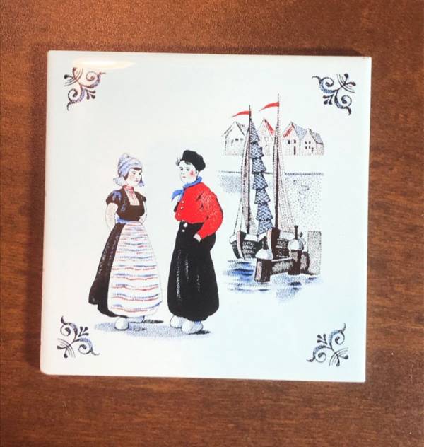 You are purchasing a Vintage Royal Mosa Holland Dutch tile of a lady and a man near a sale boat.
